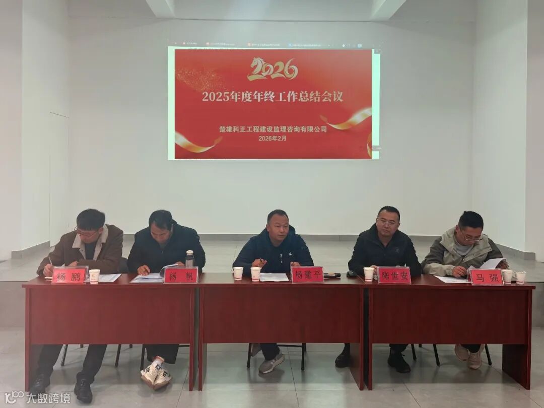岁序如诗,华章日新。2月8日,楚雄科正工程建设监理咨询有限公司隆重召开2025年度年终工作总结会议。公司领导班子、各部门负责人及全体员工齐聚一堂。公司总经理杨建平出席会议,并作《2025年年终工作总结报告》,副总经理杨帆作《2025年度经营管理工作报告》,大会回顾了2025年的奋斗历程与丰硕成果,擘画2026年发展蓝图,表彰了先进典型。大会由副总经理陈世安主持。