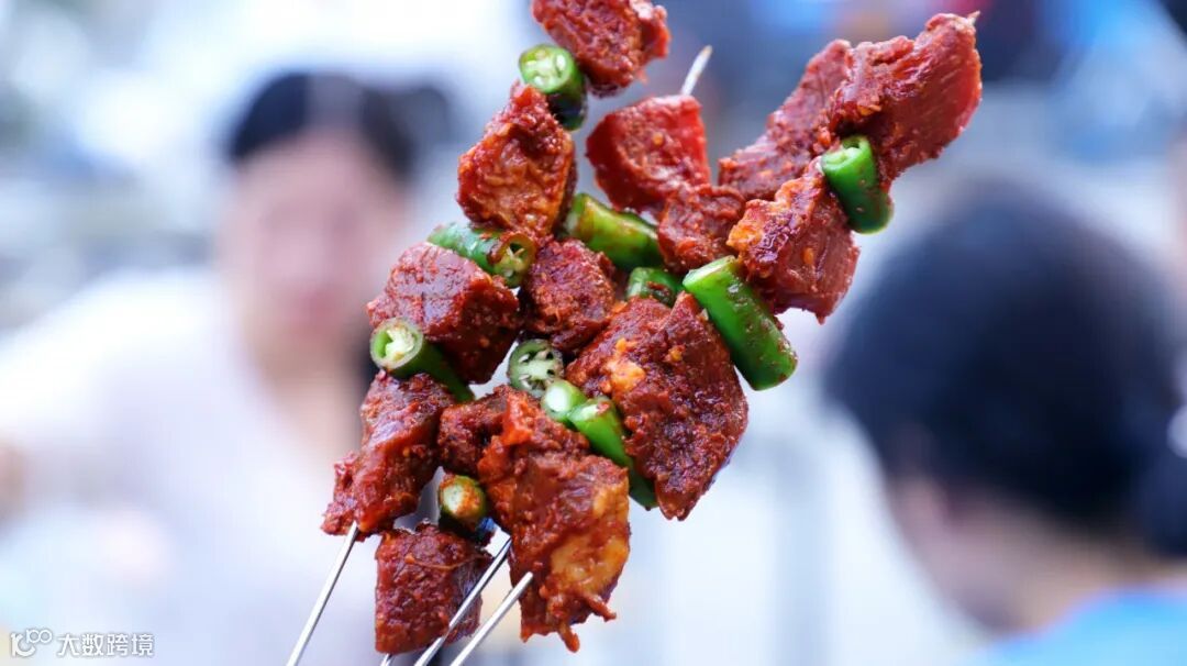 还有超大块的牛肉串,这个大块的牛肉串是选自牛后臀的小黄瓜条肉。