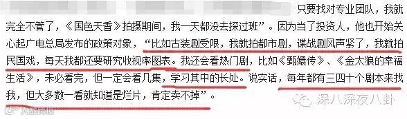 因为任老板在圈中人脉广,所以他的工作室自然就拿到一些资源,比如合作了一些颁奖盛典之类的,但任老板比较牛逼的是投资电视剧