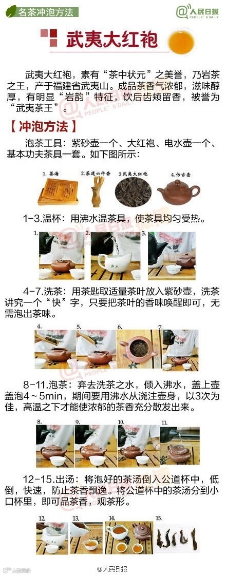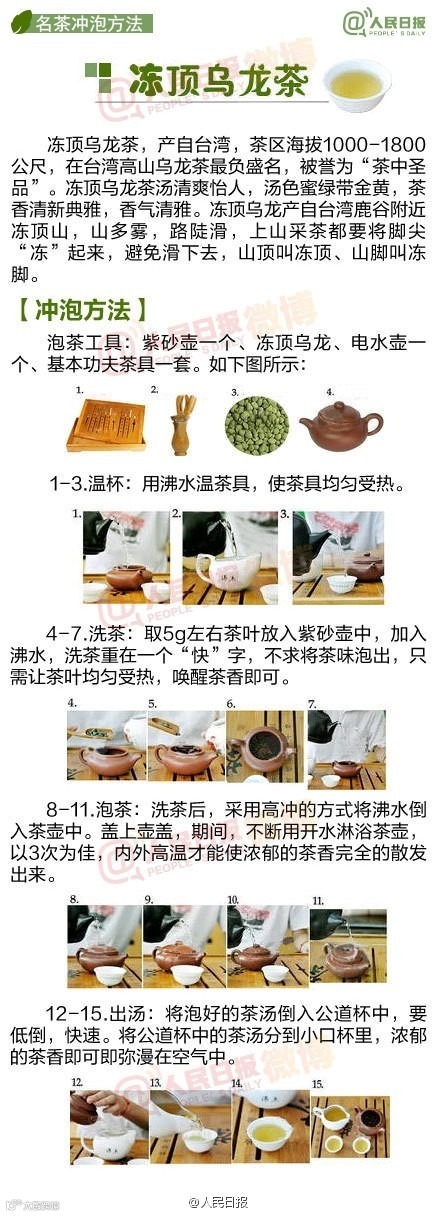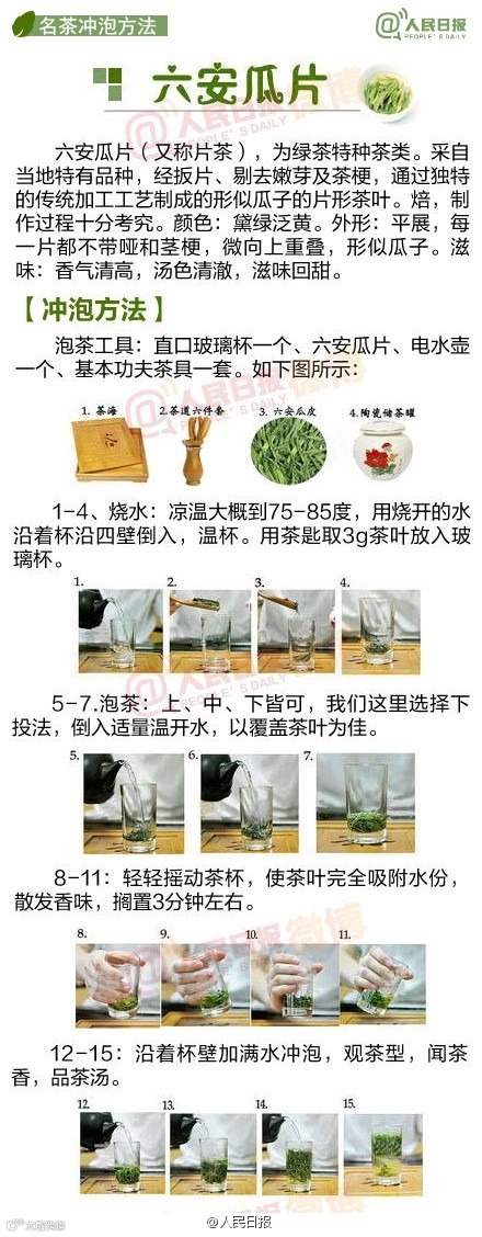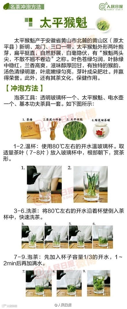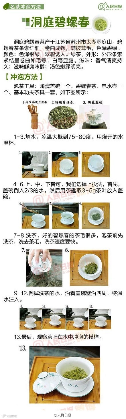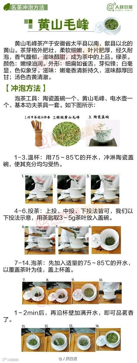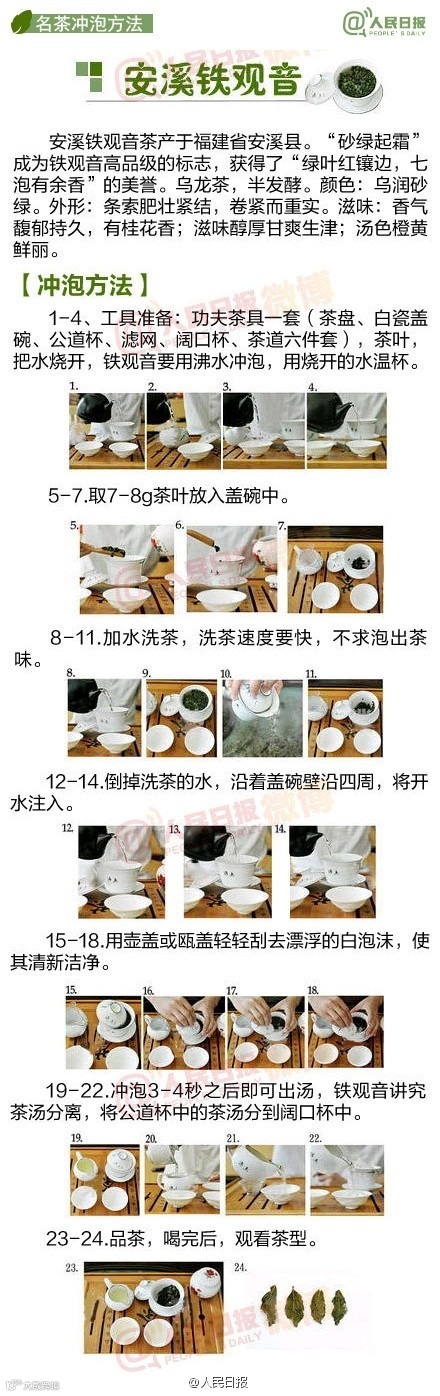 中国人一直有喝茶的习惯,可是如何泡出一壶好茶,你真的会吗?绿茶和红茶冲泡水温各不相同,你知道吗?盖碗、紫砂壶、玻璃器皿,不同器皿更适合冲泡哪种茶叶,你了解吗? 黄山毛峰、西湖龙井、安溪铁观音..武夷大红袍 .洞庭碧螺春..各种茶叶冲泡方式