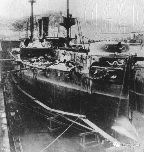 镇远舰在船坞中修葺