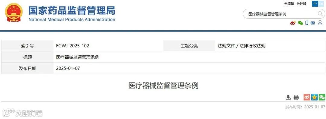 序章:2025年1月7日国家药品监督管理局发布了《医疗器械监督管理条例》,此次为根据2024年12月6日《国务院关于修改和废止部分行政法规的决定》的第二次修订版。值得一提的是,NMPA在不到一个月的时间内就做出了政策反应,可见此次高层改革决心之大,医疗器械行业或将迎来新一轮周期。一、总则方面