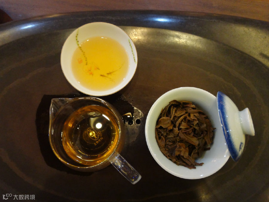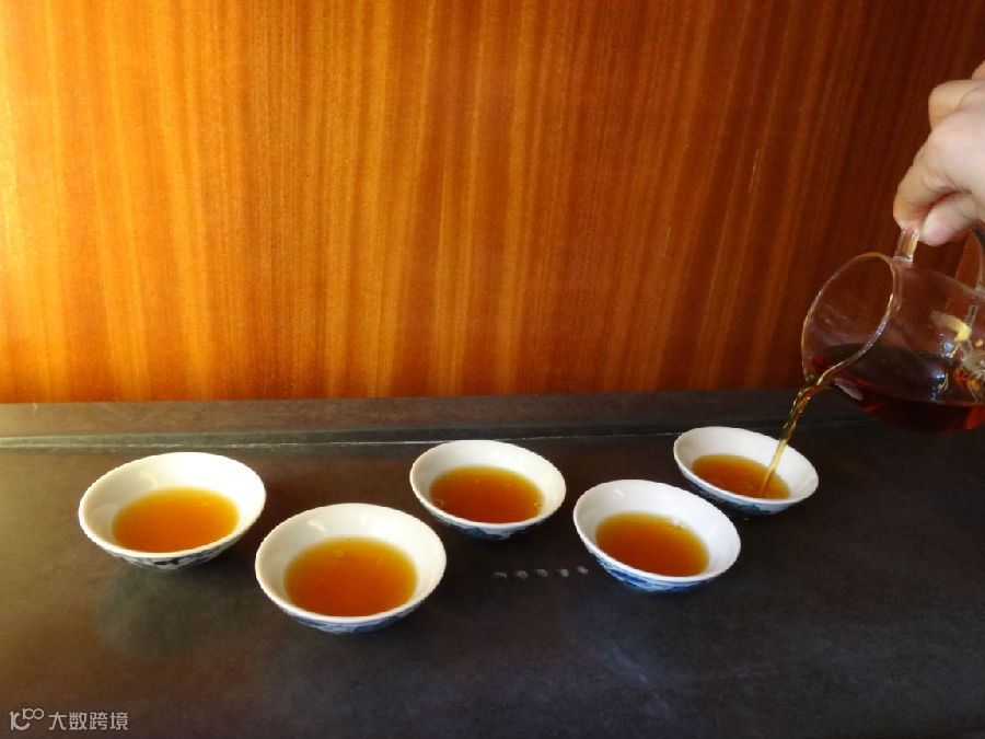 (5)品茶。品饮普洱熟茶感觉茶汤在口腔的滑度和醇厚,领略它的顺柔和陈韵。