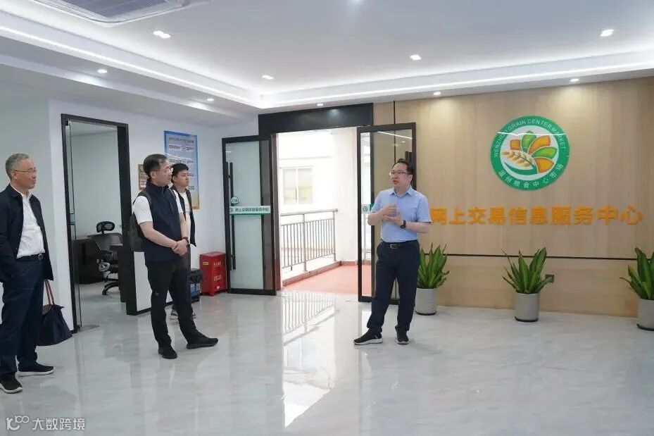 岳舒程一行走访了温州粮食中心市场仓储功能区与电子商务大楼,参观了“温粮臻选”品牌示范店及粮食网上交易信息服务中心和温州市储粮科技馆,就粮油市场的运营与数字化交易平台建设等作了深入了解。