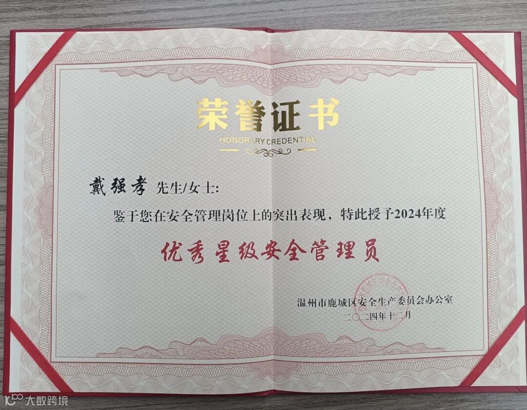 2024年12月27日,温州市安委办在鹿城区山福镇组织了安全文化下乡巡演与2024年星级安全管理员表彰交流会。在这次活动中,来自温州市粮食产业集团所属浙南农副产品市场有限公司的安全管理员戴强孝因在安全管理岗位上的突出表现,被授予“2024年度优秀星级安全管理员”称号,成为松台街道辖区唯一获此殊荣的个人,这不仅是一场对安全管理者的表彰,也是对所有致力于提升公共安全水平工作者的认可。