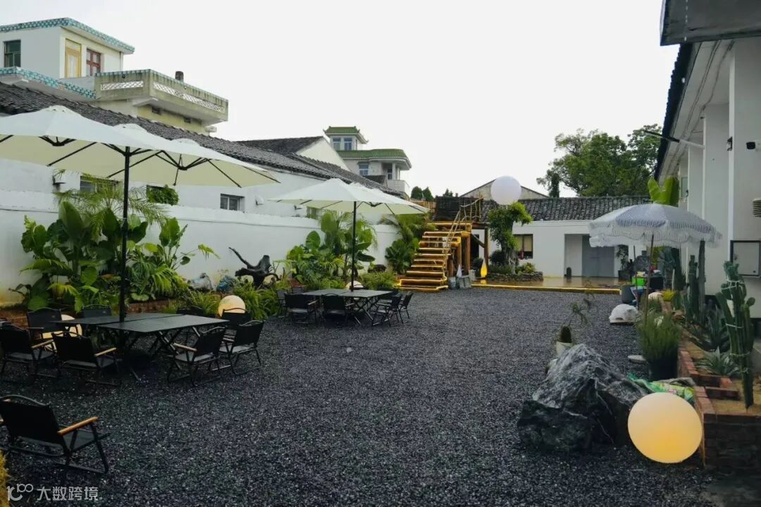 室内空间被精心规划为植物美学空间和茶室两大功能区。植物美学空间中,几十种绿植蓬勃生长,勾勒出微型生态图景;茶室保留粮仓高挑开阔的空间特质,清新淡雅。户外生态小院同样别具匠心,凉亭下露营椅随意摆放,古朴石子路串联起各个角落。
