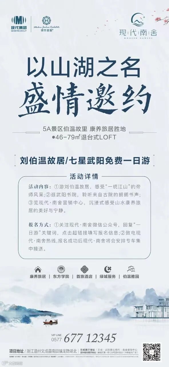 邀您刘伯温故居/七星武阳免费一日游,感受历史与自然的交融。立即关注现代·南舍公众号,回复“一日游”并留下信息,并致电我们热线,报名成功即有专人为您安排行程。让您在荷花盛开的季节,领略自然之美,探寻历史遗迹,尽享宁静与和谐。