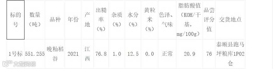 1、2021年产晚籼稻谷551.255吨。1号标551.255吨。