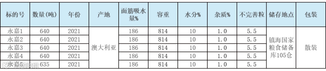 1.品种:白小麦;年份:2021;产地:澳大利亚;数量:3195吨,5个标段。