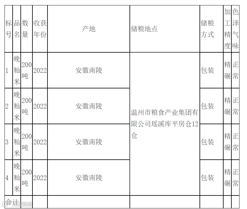 1.此次竞价销售的标的物为二级晚籼米800吨,设4个标的。