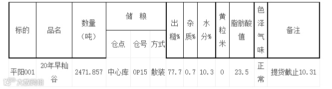 此次竞价销售的标的物为平阳产早籼谷总计2471.857吨、。