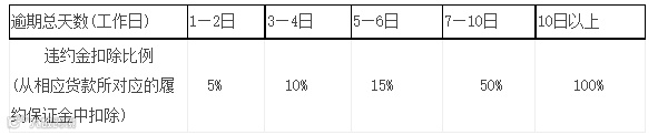 1.货款结算违约。如竞得方不能按照交易公告和购销合同要求,足额按期缴纳货款,视为违约。交易市场将按违约部分的逾期天数所对应的违约金扣除比例扣除违约部分的履约保证金,支付给委托方作为违约处理,逾期10个工作日以上未结清货款,委托方有权解除合同。