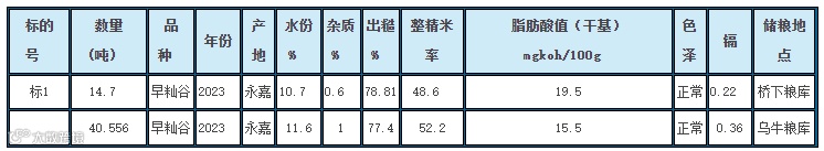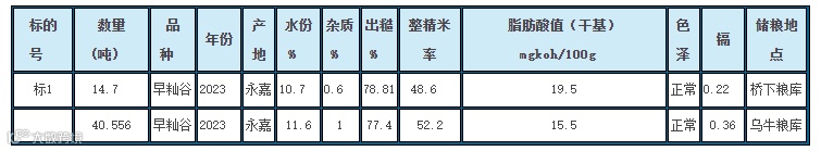 1.品种:饲料用早籼谷,年份:2023年,产地:永嘉;数量:55.256吨,共1个标段(详见标的物详情)。