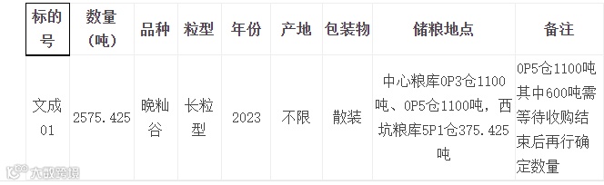 文成晚籼谷采购20231017标的物详情