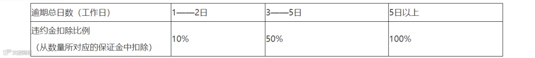 (2)交货期限:合同签订之日起至2024年4月22日前完成轮换入库工作(特殊情况和人力不可抗拒情况除外)。逾期供货或未按期完成供货量,温州粮食中心市场将按平台违约金扣除比例从相应数量所对应的保证金中扣除支付给委托方作为赔偿后,逾期超过5个工作日以上的委托方有权解除合同,没收全部履约保证金。
