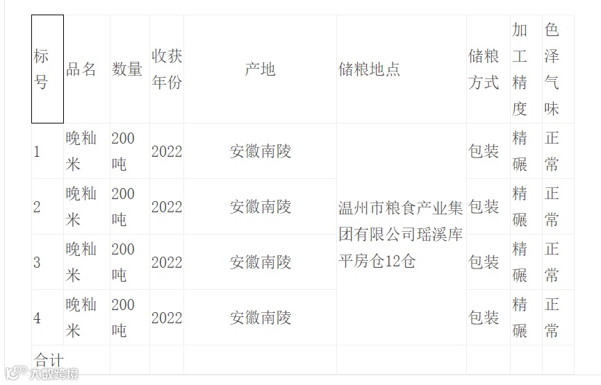 1.此次竞价销售的标的物为二级晚籼米800吨,设4个标的。