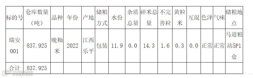 1、2022年江西乐平产晚籼米数量为837.925吨,分1个标段。