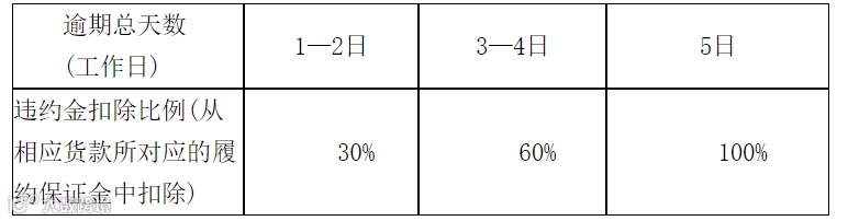 2、竞得方违反本标书重要申明中的约定或违反逾期提货时限的,温州粮食中心市场有权将相应于数量的履约保证金(140元/吨)全额赔付给委托方。