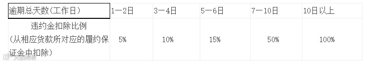 1.货款结算违约。如竞得方不能足额按期缴纳货款,视为违约。粮食批发交易市场(温州粮食中心市场)将按比例把违约部分相对应的履约保证金支付给委托方作为赔偿。