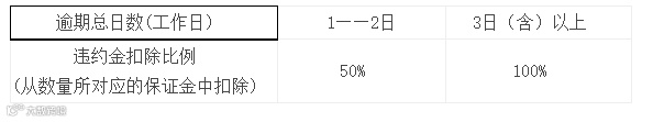 2、委托方不能按约按期交货的,视为违约(由不可抗力情况所导致的交货延期除外)。温州粮食中心市场将把违约部分相对应的履约保证金支付中标方作为赔偿。