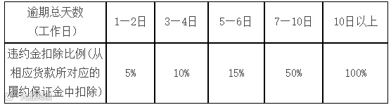 2、委托方不能按约按期交货的,视为违约(由不可抗力情况所导致的交货延期除外)。温州粮食中心市场将把违约部分相对应的履约保证金支付中标方作为赔偿。