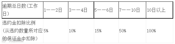 3、逾期超过10个工作日以上的,委托方有权单方面解除合同或要求竞得方继续履行合同,并适当延长交货期限。委托方要求单方面解除合同的,扣除竞得方全部履约保证金,已供货物经入库验收检验后结算相应货款;委托方要求继续履行合同的,竞得方除承担相应的违约责任外,还必须在延长交货期限内履行本合同和标书规定的全部义务,届时仍未完成入库或未通过入库验收检验的,扣除全部履约保证金。