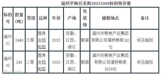 (温州早籼谷采购20231008)