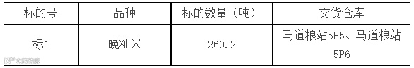 2、轮出标的物:上望粮站27P5仓和上望粮站27P6仓2021年产晚籼谷2022年4月份加工成的二级晚籼米260.2吨,储粮方式:包装,共设1个标的,其中: