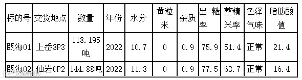 1、品种:2022年瓯海区本地早籼稻谷、晚籼稻谷。