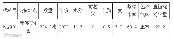 3、质量:“温州市粮油产品质量检测站”所出具检验报告仅作参考,具体质量情况以委托方标的物所在的仓库实物为准,包括质量缺陷、瑕疵,竞买人应在竞价前对标的实际状况进行了解,委托方接受现场看样,一旦进入网上竞价,即表示本人接受标的物一切现状,并对自己的行为承担法律责任。