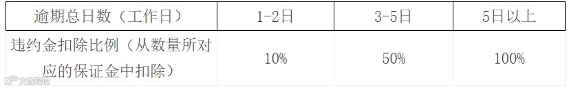 2、竞得方违反本标书重要申明中的约定或违反逾期交货时限的,温州粮食中心市场有权将相应于数量的履约保证金(140元/吨)全额赔付给委托方。