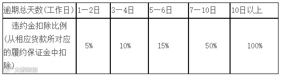 2、委托方不能按约按期交货的,视为违约(由不可抗力情况所导致的交货延期除外)。温州粮食中心市场将把违约部分相对应的履约保证金支付中标方作为赔偿。
