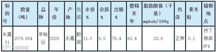 永嘉早籼稻谷销售20230328标的物详情