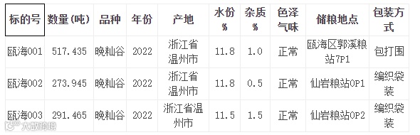 瓯海区饲料稻谷销售20230322标的物详情