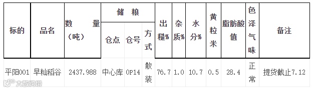 此次竞价销售的标的物为2020平阳产早籼稻谷2437.988吨、。