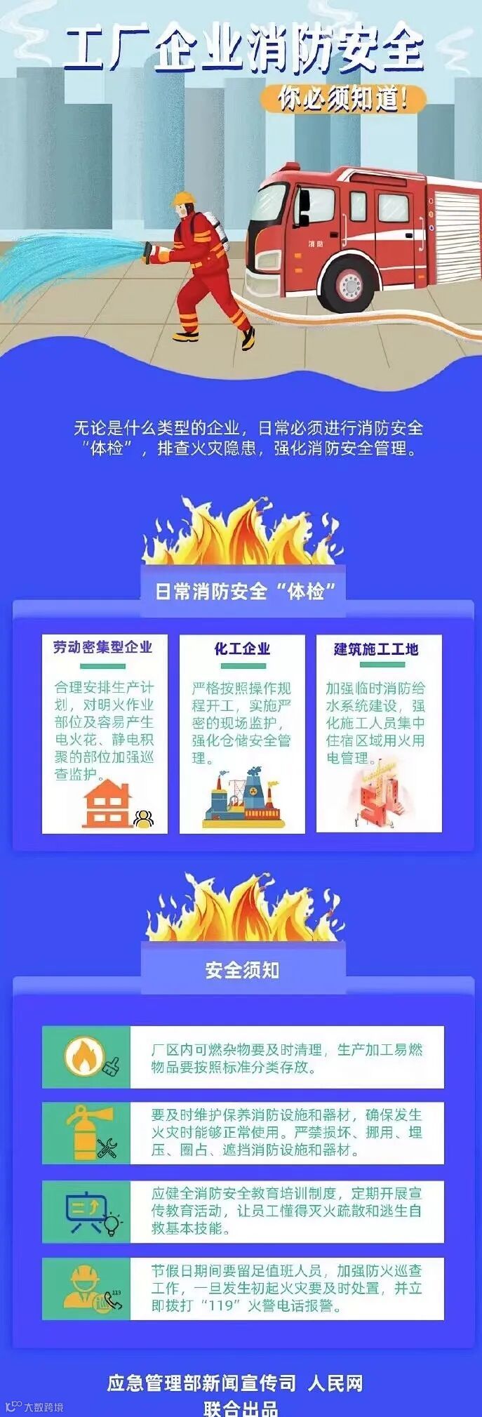 三、厂区内可燃杂物要及时清理。生产加工易燃物品要按照标准分类存放。