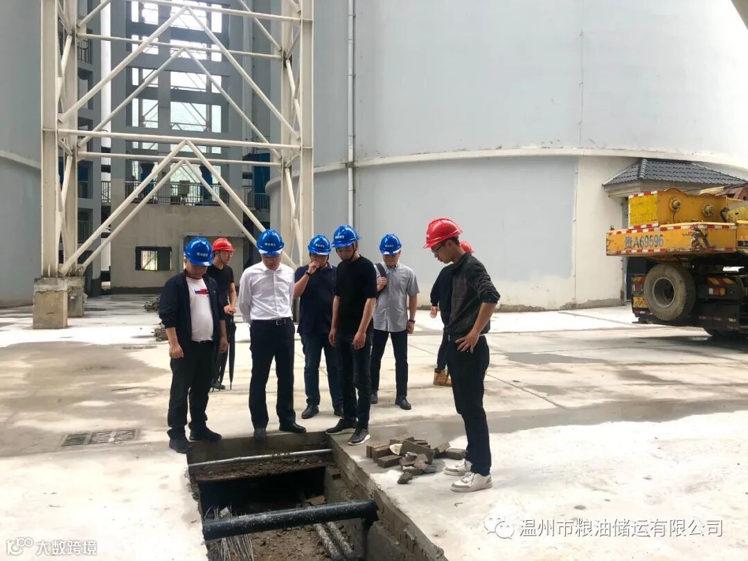 5月8日下午,温州市粮食和物资储备局局长王仁博带队到温州市粮食储备潘桥库检查指导工程进展和防汛工作,公司董事长陈少克,总经理黄达尔等陪同检查。