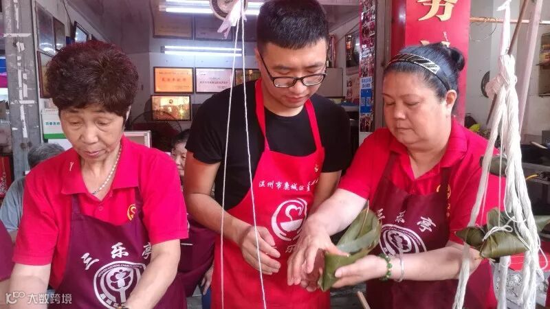 早餐分发结束后,志愿者们在三乐亭服务队阿姨们手把手地耐心指导下,学习包粽子。从粽叶位置的摆放、馅料的选择添加以及最后的包裹定型,阿姨们仔细讲解、重复示范。几经努力,大家都包出了称心如意的粽子。这些粽子也将在端午时节送给环卫工人,为他们送去最真挚的节日问候。