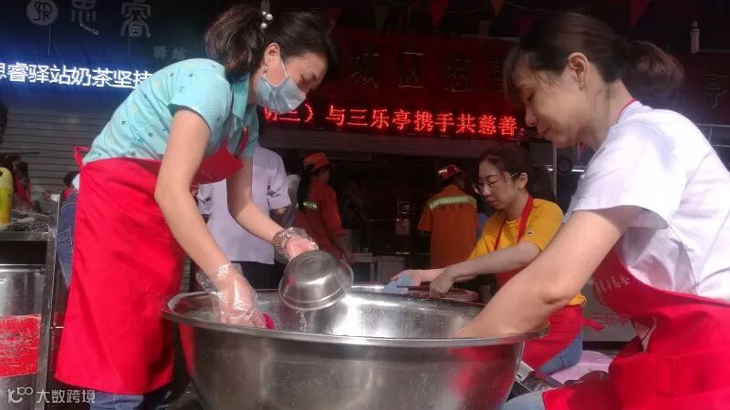 当天,来自储运公司和集团本部的十几位志愿者早早来到了三乐亭,戴好口罩与手套,并在三乐亭负责人蒋队长的安排下,分工协作,为排队领取早餐的周边群众和环卫工人热心服务。通过打粥、放菜、送粽、洗碗,整个志愿服务活动现场气氛热烈,秩序井然。