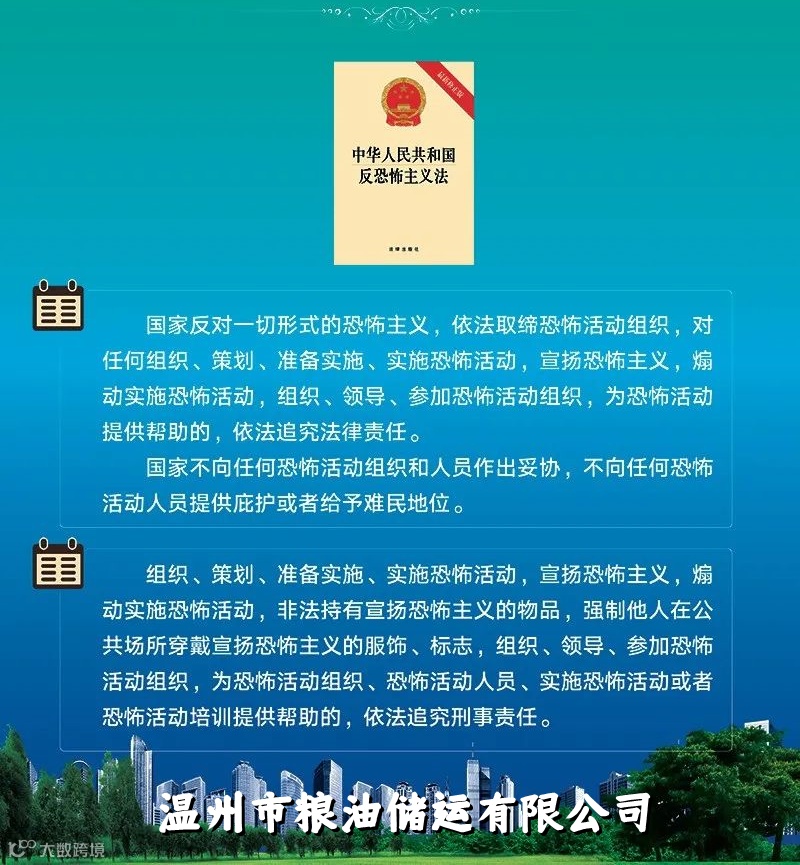 为了防范和惩治恐怖活动,加强反恐怖主义工作,维护国家安全、公共安全和人民生命财产安全,根据宪法制定。由中华人民共和国第十二届全国人民代表大会常务委员会第十八次会议于2015年12月27日通过。