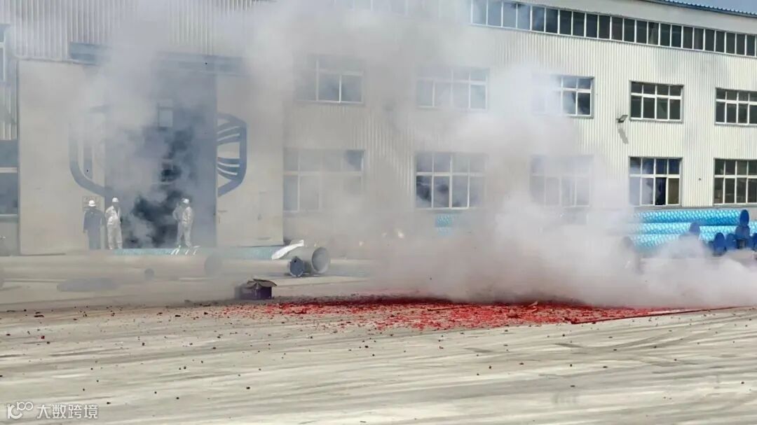 开工现场鞭炮齐鸣,彩烟腾绕,氛围热烈。刘磊按动钛合金车间下料锯床按钮,开启FPSO RAIA上部模块钛合金管下料工作,标志着FPSO RAIA钛管系预制项目正式投入生产。