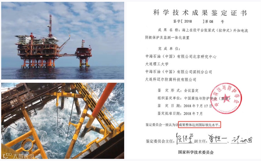 2017年6月,由公司自主研发生产的“张紧式外加电流阴极保护系统(ICCP)”在“陆丰13-2”WHP平台上成功投产使用。2018年7月,经中国腐蚀与防护学会组织鉴定,“张紧式ICCP”可提升海洋平台防腐技术的可靠性与国产化水平,打破了国外垄断,替代了国外技术和产品,整体达到“国际领先水平”。