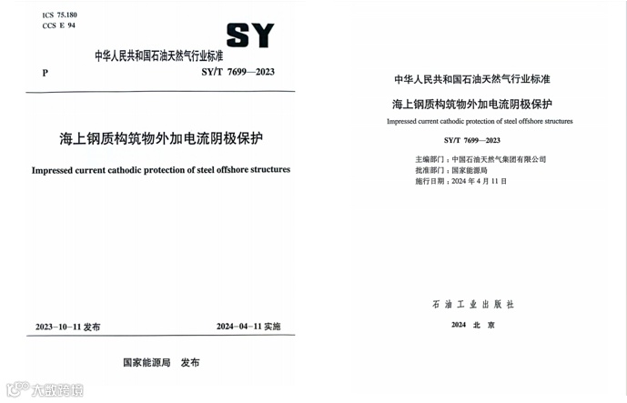 公司参与编写了行标SY/T 7699-2023《海上钢制构筑物外加电流阴极保护》。