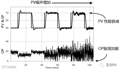 当过程变量上有很多噪声时,使用微分控制模式是个坏主意,因为微分会放大高频噪声,引起控制器执行机构的过度损耗。