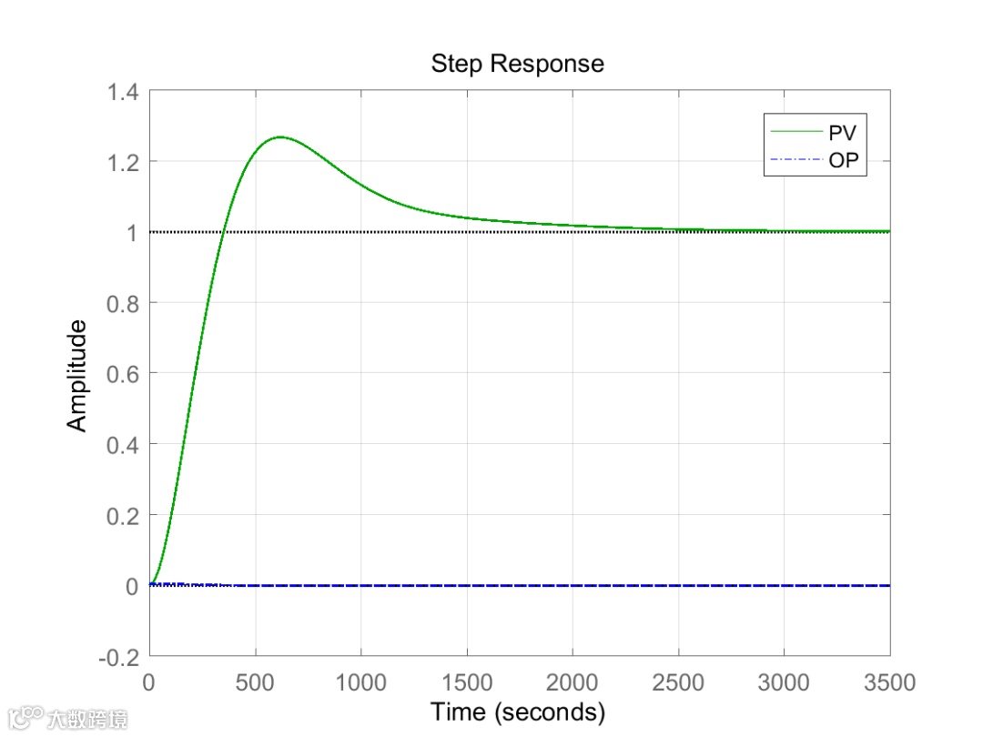 一个没有纯滞后的对象,因为特性复杂使用Lambda整定方法只能得到一个缓慢的响应。有没有更好的办法呢?当然有,就是用PD控制器,而且微分还是不完全微分,本质上是一个超前滞后环节,参数如下