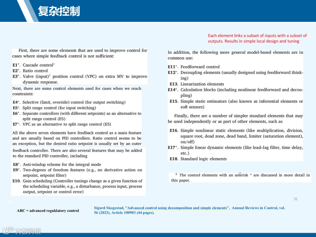 Sigurd教授在2023年''Advanced control using decomposition and simple elements''中,给出了一个复杂控制的定义,这个定义也比传统的复杂控制也更宽泛。但是他的定义里没有介绍整定参数时利用耦合的嵌套控制和使用不同Lambda实现的解耦控制。