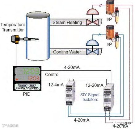 分程控制:PID控制器有一个线性输出,这个线性输出边变换后输出到多个执行机构上。