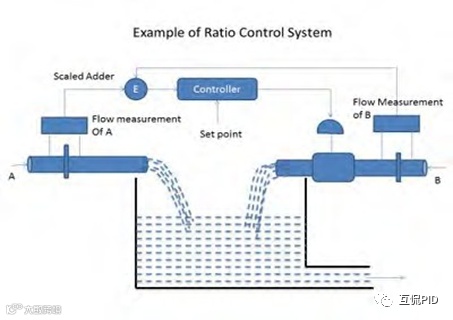 比值控制:一个控制器确定PV之间的期望比值,然后一个PV乘以该比率成为第二个PV的设定值。当自然流量改变时,自然流量的比率乘以自然流量确定控制流量设定值。