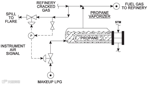 燃气压力下降导致液化石油气补给阀的仪表空气信号增加。这是一个“气开”阀,需要更多的空气压力来打开丙烷流量控制阀。这很正常。