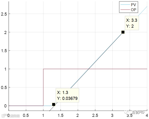 一个积分被控对象其开环单位输出的阶跃响应如下图所示。